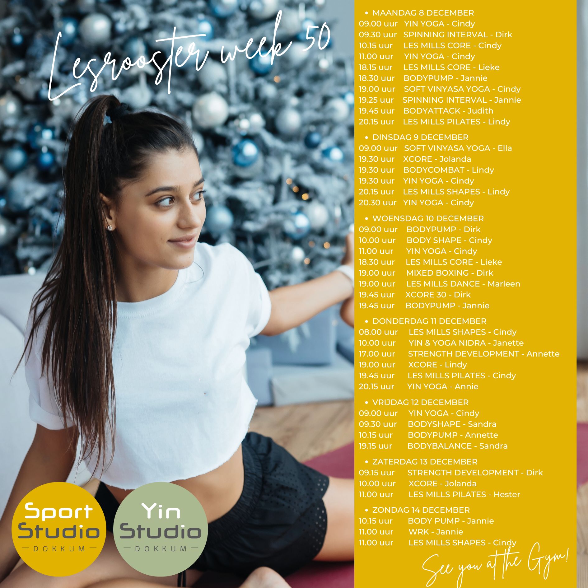 Elk jaar merken we dat de lessen in deze laatste week voor de kerstvakantie iets minder druk zijn, dus we hebben ook dit jaar gekozen voor een ietwat minder uitgebreid lesrooster. Scheelt maar een paar lesjes, hoor.... Kijk dus even goed waar je favoriete les nu staat!