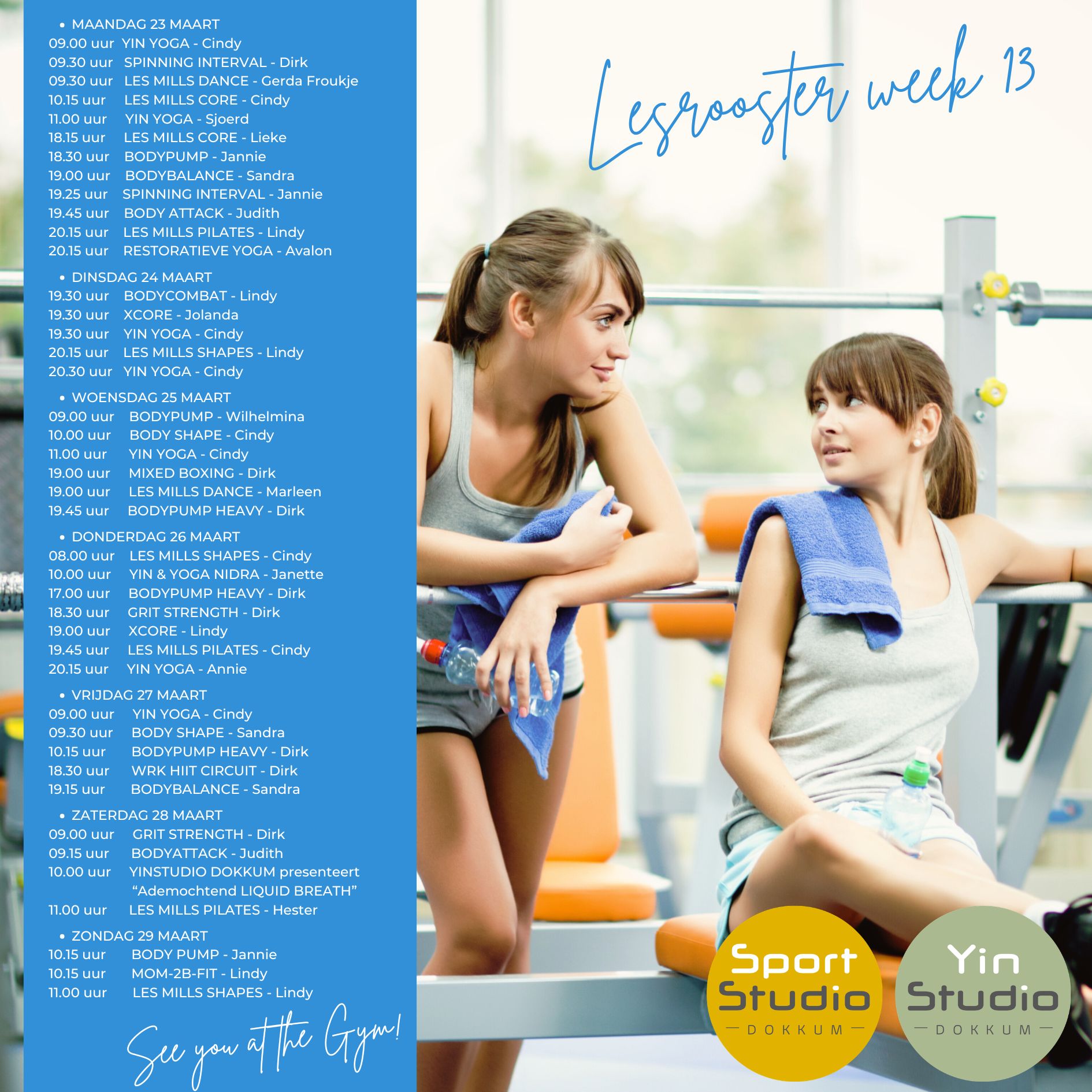 En dan is het voorjaar officieel begonnen! We zien de zon steeds vaker, er is meer licht en dat merken we écht op het sportcentrum! Mooi om te ervaren dat het voorjaar zo'n positieve invloed heeft op ons allemaal. Ook deze week weer een bomvol rooster voor jullie allemaal om die voorjaarskriebels er lekker uit te sporten haha... Tip: probeer ook eens een andere les dan de les waar je al maanden (of soms jaren) naartoe komt. Het kan soms enorm verrassend zijn om te ervaren dat een les, die je eerst niet geschikt leek voor jezelf, ineens precies dé les is die je nodig hebt!